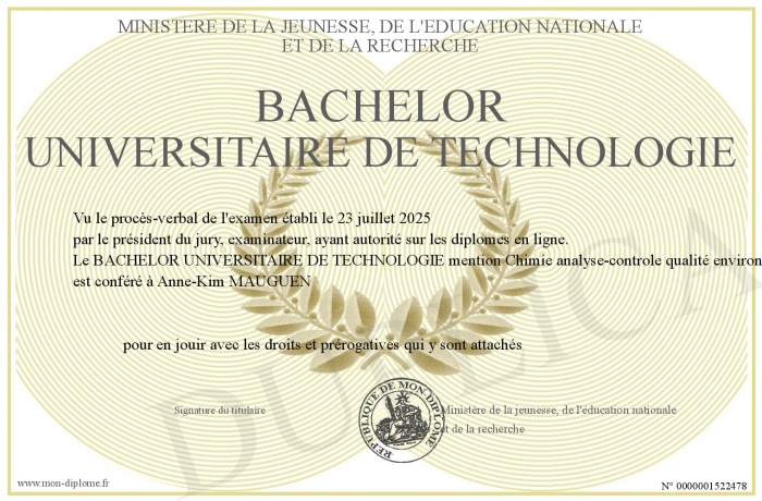 Envoyez par email votre BACHELOR UNIVERSITAIRE DE TECHNOLOGIE personalisé