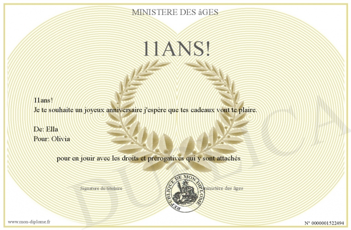 Envoyez par email votre 11ans! personalisé