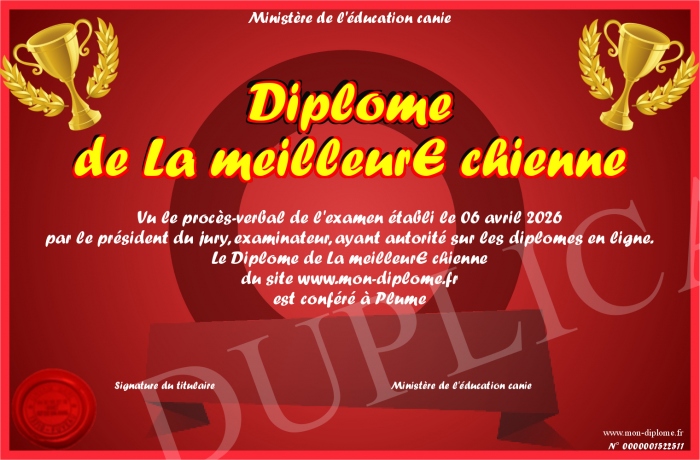 Envoyez par email votre Diplôme de La meilleurE chienne personalisé