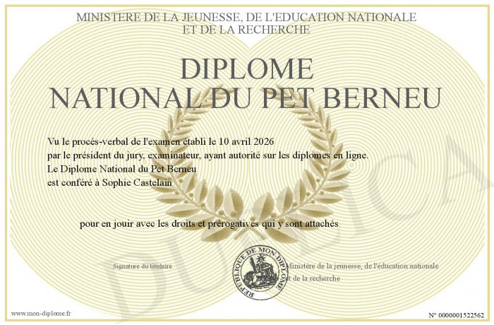 Envoyez par email votre Diplôme National du Pet Berneu personalisé