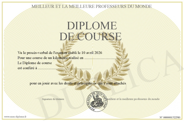 Envoyez par email votre Diplôme de course personalisé