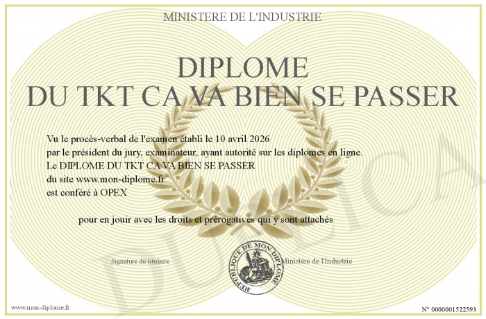 Envoyez par email votre DIPLOME DU TKT CA VA BIEN SE PASSER personalisé