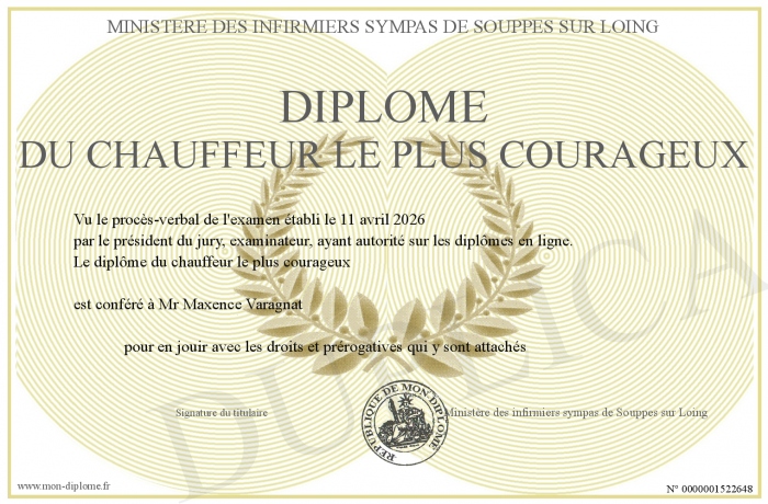 Envoyez par email votre Diplôme du chauffeur le plus courageux personalisé