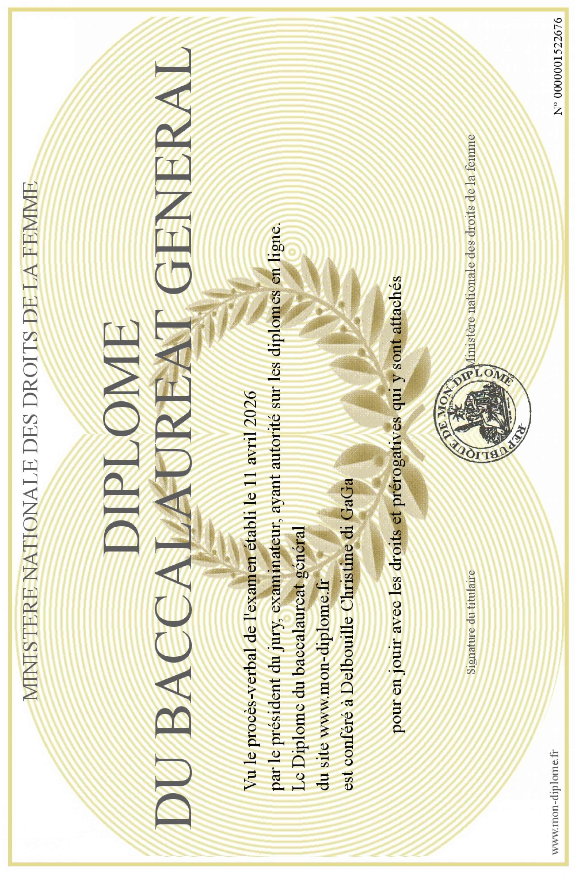 Envoyez par email votre Diplôme du baccalaureat général personalisé