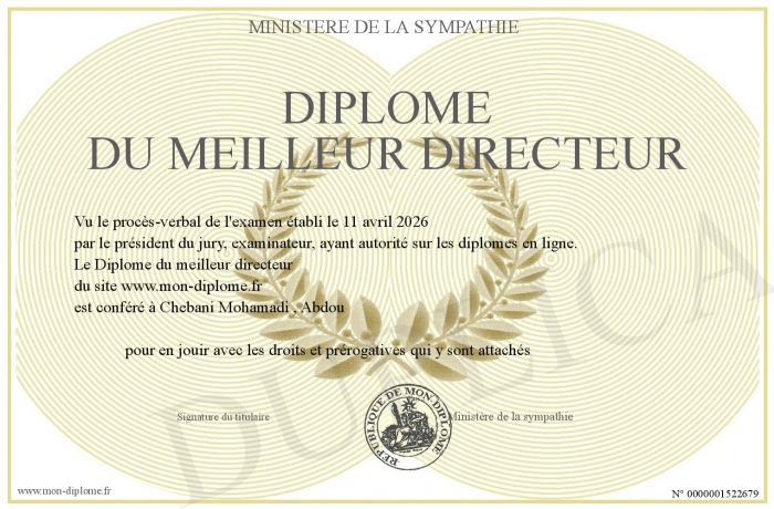 Envoyez par email votre Diplôme du meilleur directeur personalisé