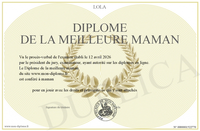 Envoyez par email votre Diplôme de la meilleure maman personalisé