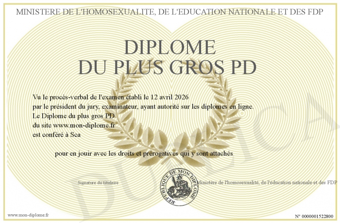 Envoyez par email votre Diplôme du plus gros PD personalisé