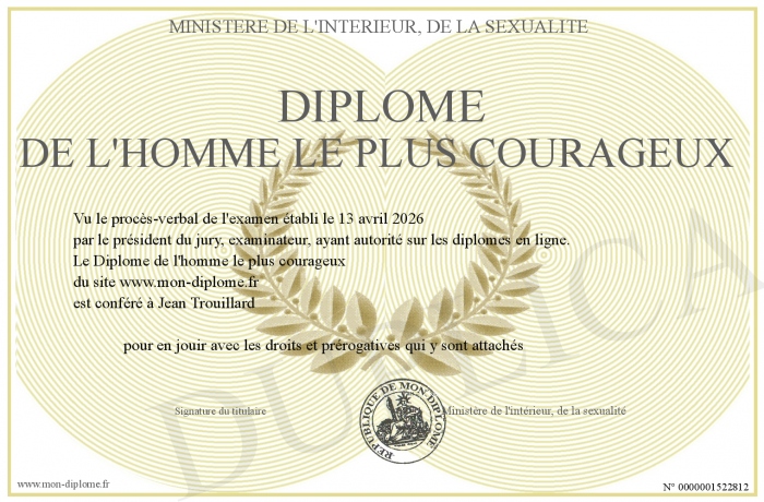 Envoyez par email votre Diplôme de l'homme le plus courageux personalisé