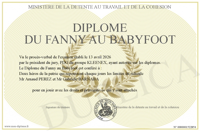 Envoyez par email votre Diplôme du Fanny au Babyfoot personalisé