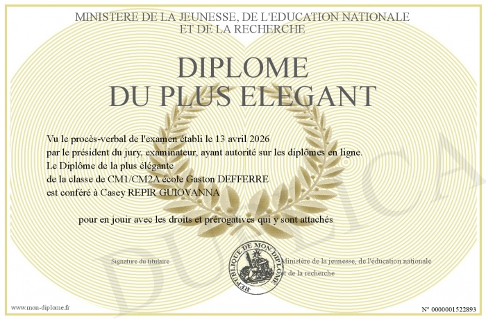 Envoyez par email votre Diplôme du plus élégant personalisé
