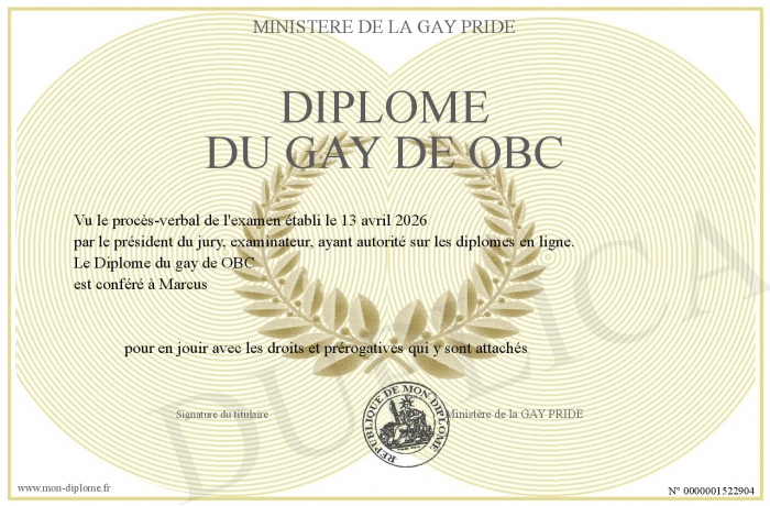 Envoyez par email votre Diplôme du gay de OBC personalisé