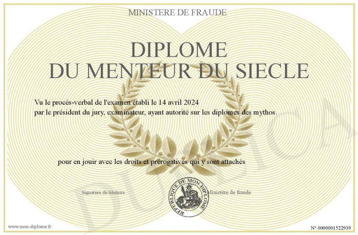Envoyez par email votre Diplôme du menteur du siècle personalisé
