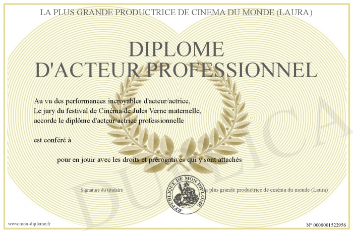 Envoyez par email votre Diplôme d'acteur professionnel personalisé