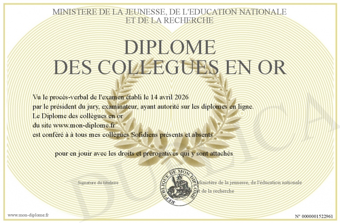 Envoyez par email votre Diplôme des collègues en or personalisé