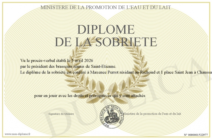 Envoyez par email votre Diplôme de la sobriété personalisé