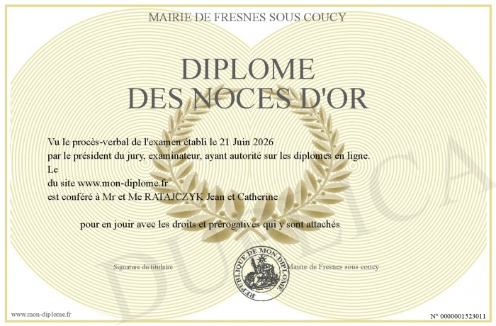 Envoyez par email votre Diplôme des Noces d'or personalisé