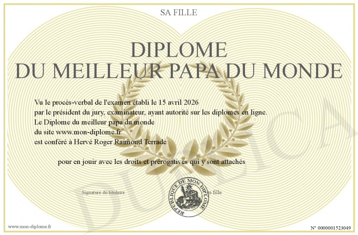 Envoyez par email votre Diplôme du meilleur papa du monde personalisé