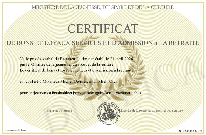 Envoyez par email votre Certificat de bons et loyaux services et d'admission à la retraite personalisé