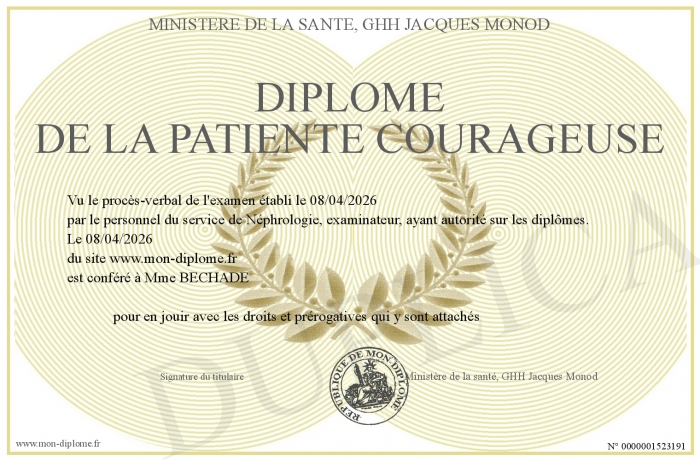 Envoyez par email votre Diplôme de la patiente courageuse personalisé
