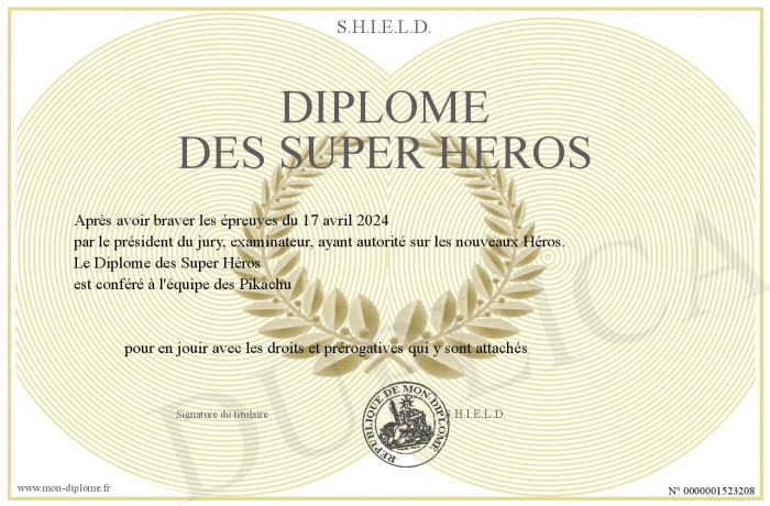 Envoyez par email votre Diplôme des Super Héros personalisé
