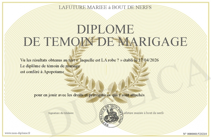 Envoyez par email votre Diplôme de témoin de marigage personalisé