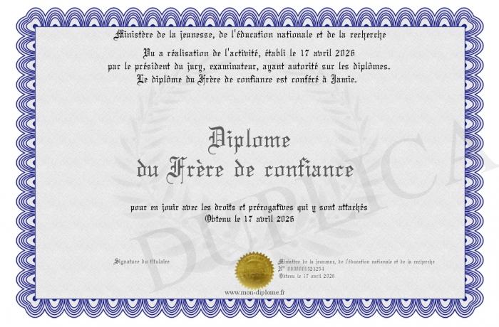 Envoyez par email votre Diplôme du Frère de confiance personalisé