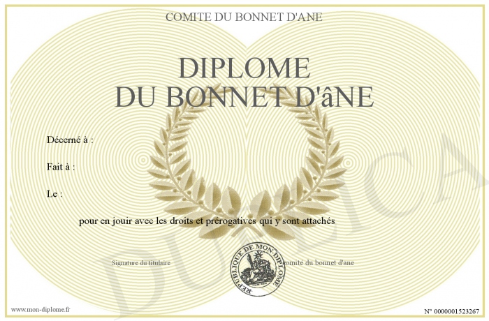 Envoyez par email votre Diplôme du bonnet d'âne personalisé