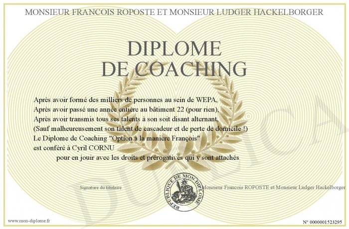 Envoyez par email votre Diplôme de Coaching personalisé