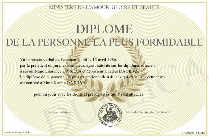 Envoyez par email votre Diplôme de la personne la plus formidable personalisé