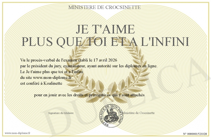 Envoyez par email votre Je t'aime plus que toi et a l'infini personalisé