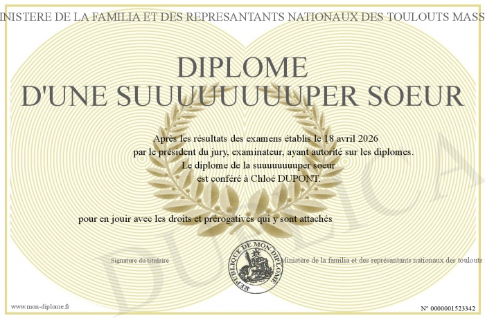 Envoyez par email votre Diplôme d'une suuuuuuuuper soeur personalisé