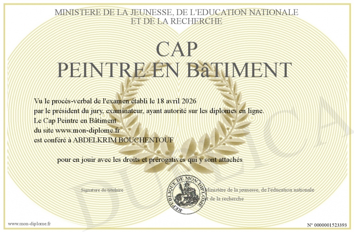 Envoyez par email votre Cap Peintre en Bâtiment personalisé