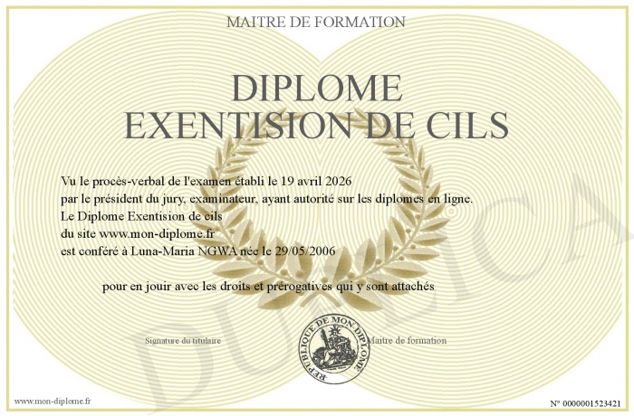 Envoyez par email votre Diplôme Exentision de cils personalisé