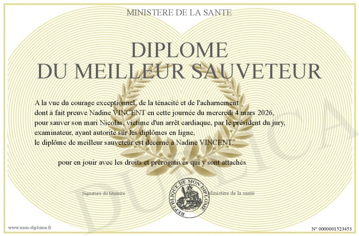 Envoyez par email votre Diplôme du meilleur sauveteur personalisé