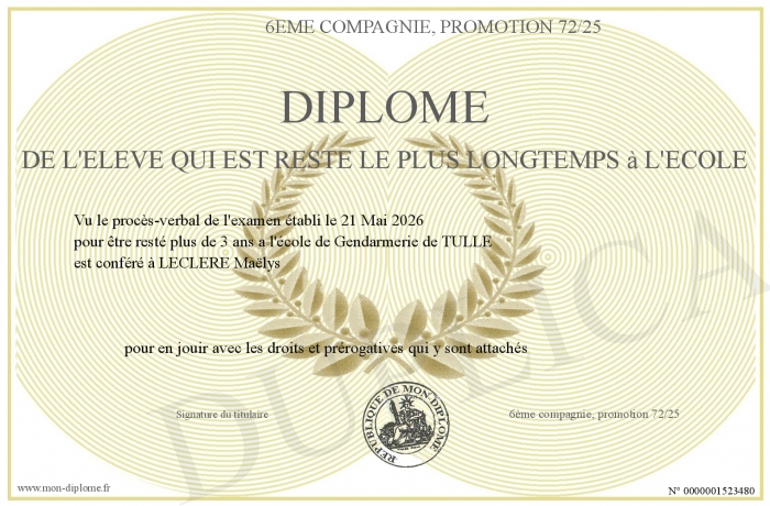 Envoyez par email votre Diplôme De L'élève qui est resté le plus longtemps à l'école personalisé