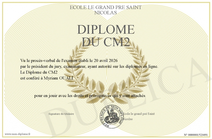 Envoyez par email votre Diplôme du CM2 personalisé
