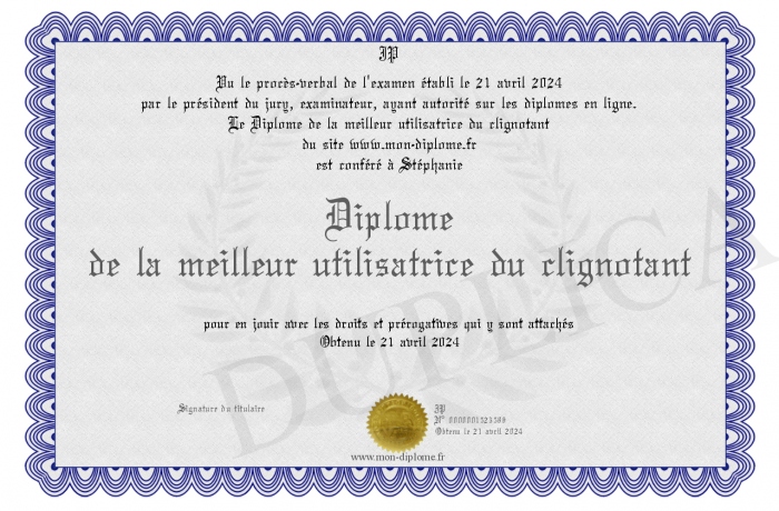 Envoyez par email votre Diplôme de la meilleur utilisatrice du clignotant personalisé