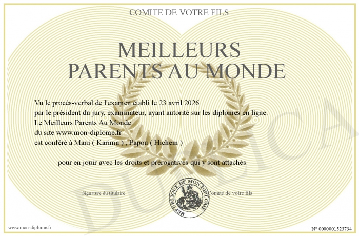 Envoyez par email votre Meilleurs Parents Au Monde personalisé