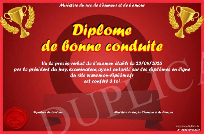 Envoyez par email votre Diplome de bonne conduite personalisé