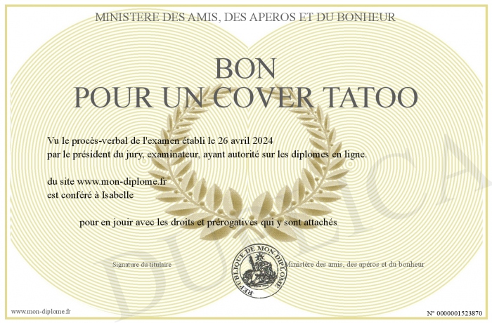 Envoyez par email votre BON POUR UN COVER TATOO personalisé