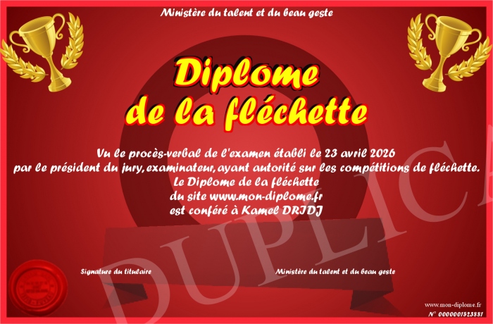 Envoyez par email votre Diplôme de la fléchette personalisé