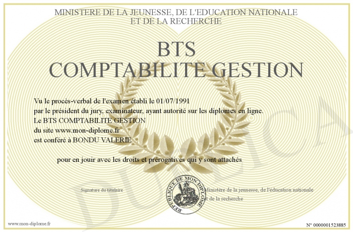Envoyez par email votre BTS COMPTABILITE GESTION personalisé