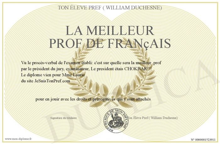Envoyez par email votre La Meilleur Prof De Français personalisé