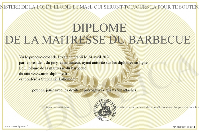 Envoyez par email votre Diplôme de la maîtresse du barbecue personalisé