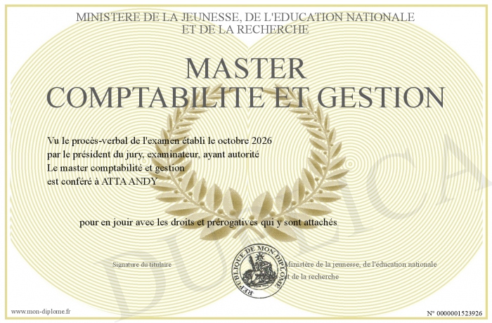 Envoyez par email votre MASTER COMPTABILITE ET GESTION personalisé