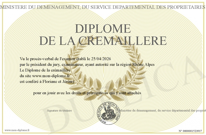 Envoyez par email votre Diplôme de la crémaillère personalisé