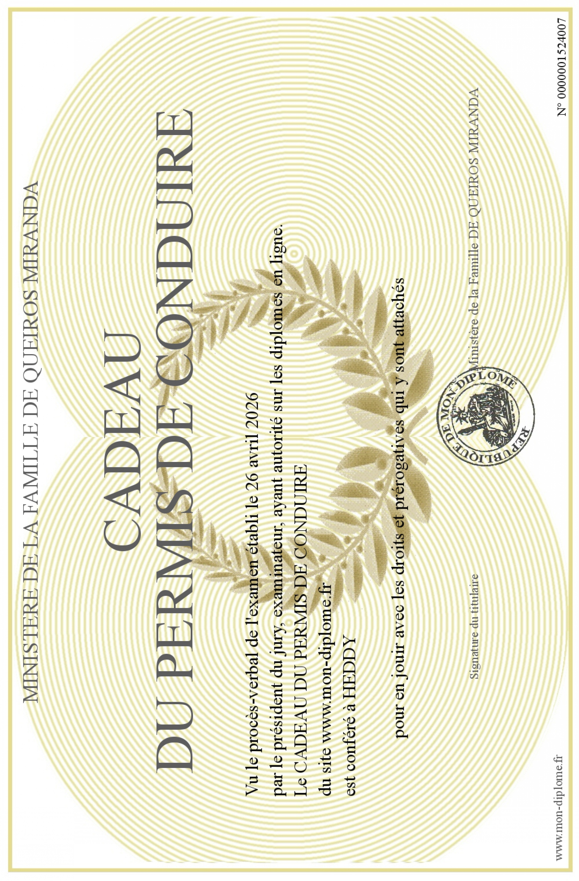 Envoyez par email votre CADEAU DU PERMIS DE CONDUIRE personalisé