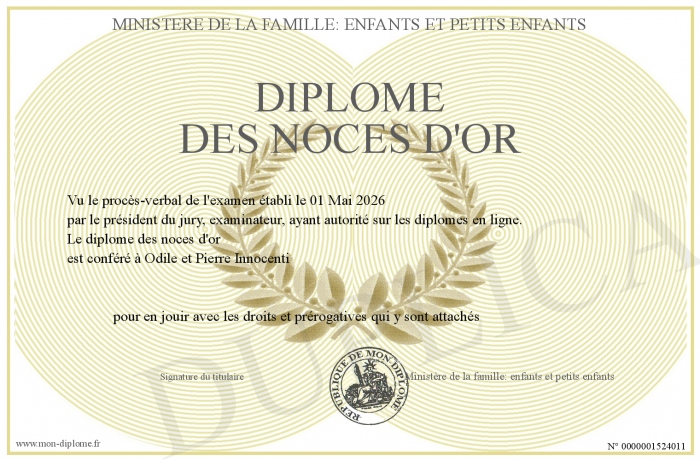 Envoyez par email votre Diplôme des noces d'or personalisé
