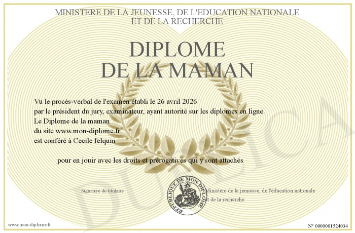 Envoyez par email votre Diplôme de la maman personalisé