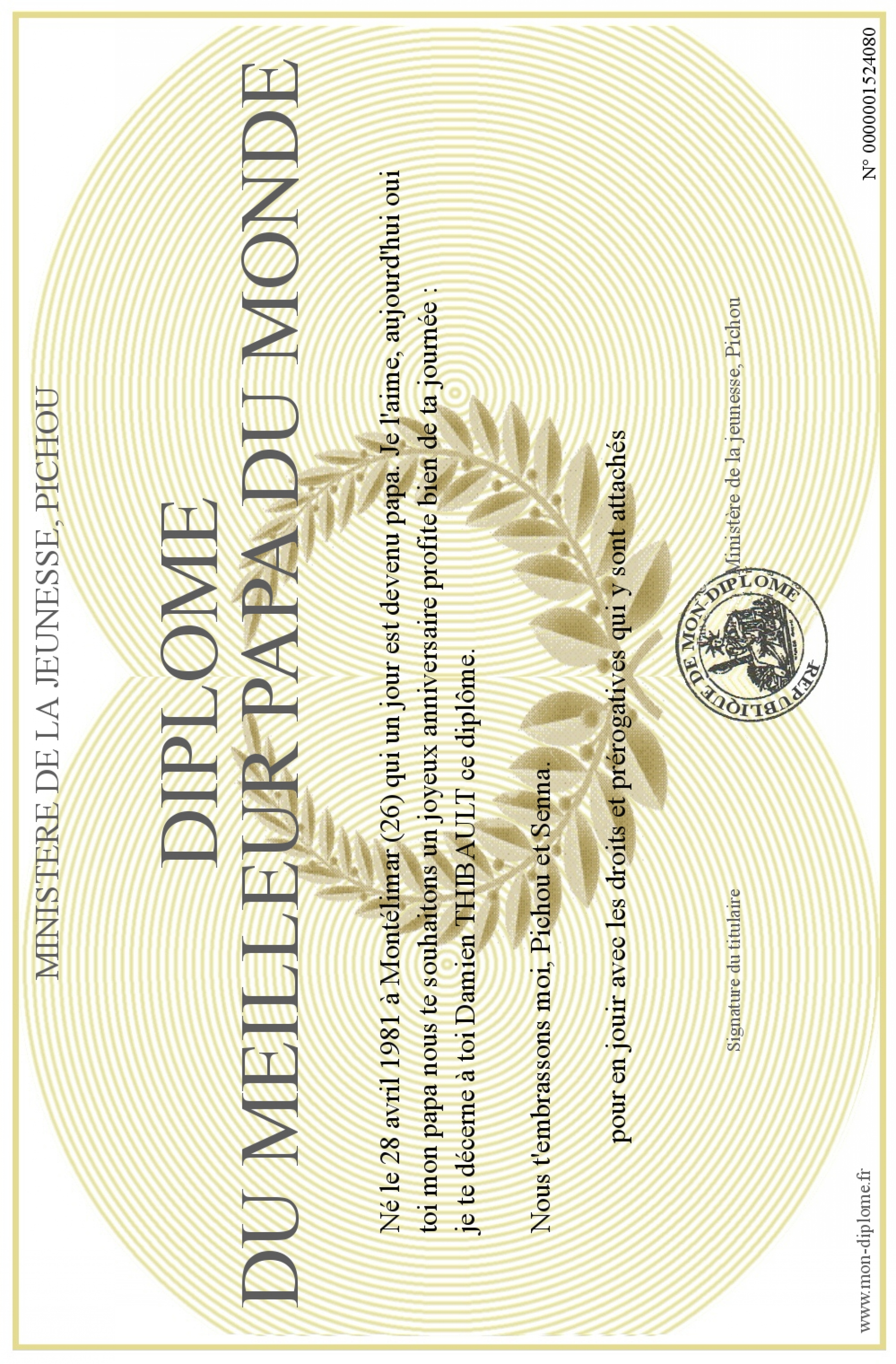 Envoyez par email votre Diplôme du meilleur papa du monde personalisé